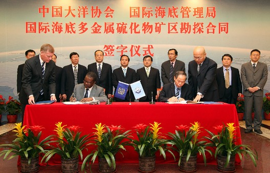 2011年11月18日,中国大洋矿产资源研究开发协会(以下简称“大洋协会”)与国际海底管理局(以下简称“管理局”)关于国际海底多金属硫化物矿区勘探合同签字仪式在北京举行。大洋协会秘书长金建才先生和管理局秘书长涅﹒艾洛提﹒奥丹敦先生分别代表双方在合同文本上签字。国家海洋局党组书记、局长刘赐贵,国家海洋局党组成员、副局长、大洋协会理事长王飞,管理局法律顾问迈克﹒劳治,管理局法律专家张克宁,外交部条法司贾桂德副司长,财政部经济建设司环资处处长、管理局财务委员会委员姚劲松,中国地质调查局基础部主任、管理局法律和技术委员会委员张海启,国家海洋局办公室主任李海清,国家海洋局国际司司长张占海、大洋协会办公室副主任李波等领导出席了签字仪式,仪式由王飞理事长主持。