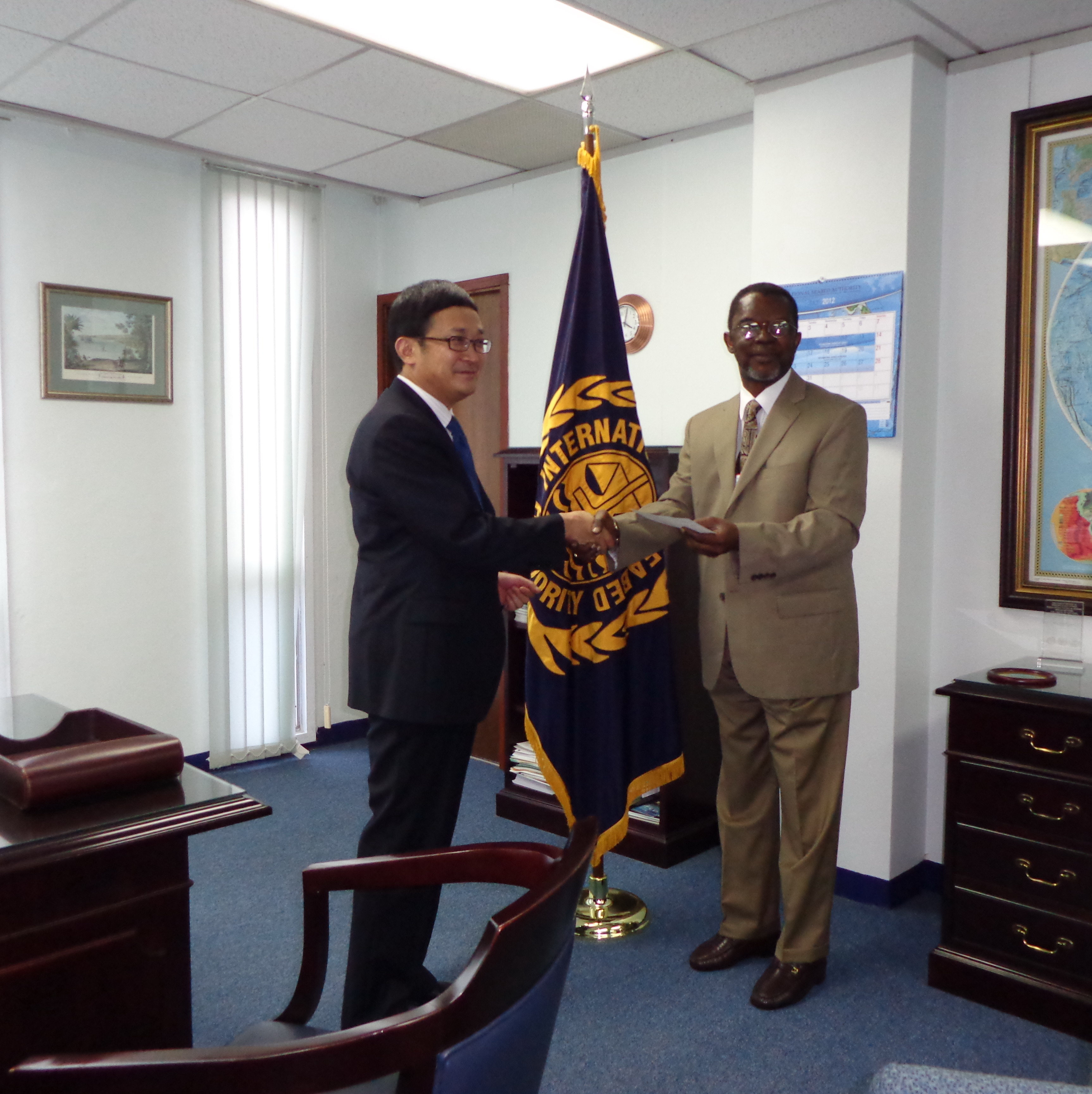 2012年7月12日,中国常驻国际海底管理局代表郑清典大使,在金斯敦国际海底管理局总部,向管理局秘书长奥敦通转交了中国政府向管理局自愿信托基金的捐款贰万美元。