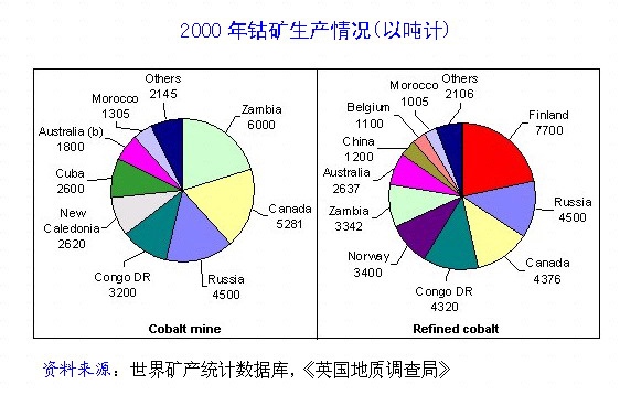 ??? 钴和其他许多贱金属一样,现货市场价格在过去30个月里持续下降,从1999年5月每磅20美元以上跌至每磅10美元以下。在历史上,钴价波动较大。在1979年前扎伊尔沙巴省发生动乱期间,钴价在数周之内激增三倍。当时扎伊尔约占全球供应量的一半。现在,钴生产在地域上远没有以前集中。但从中、短期来看,需求仍趋于缺乏价格弹性。只要认为可能出现供应问题,价格仍可能迅速倍增。