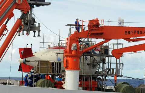 5,有关专家在对回收上来的蛟龙号进行维护和检修。