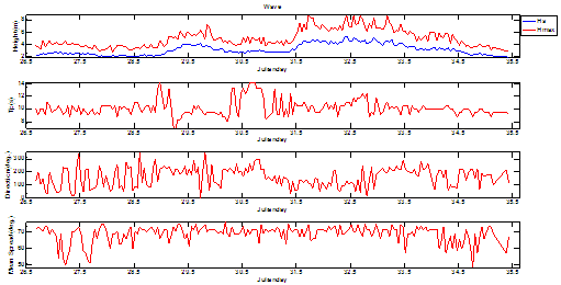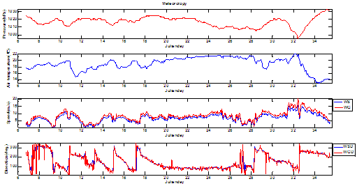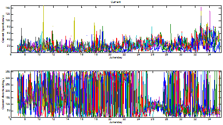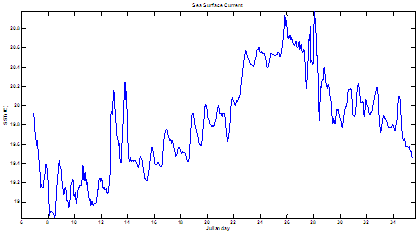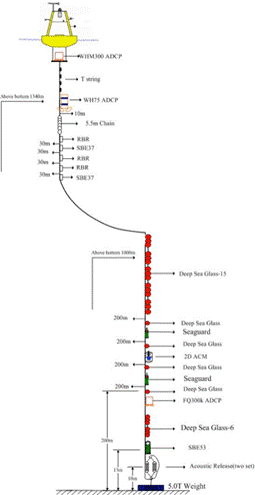中国大洋22航次第一航段在西南印度洋成功布放一套综合锚系浮标系统。该系统由深海综合锚系和表面浮标系统组成(图1),上层浮标系统收集天大气压、风速、空气温度、表层水温、8-120m上层海洋海流以及波浪等数据,这些数据通过卫星系统每小时一次实时发送到陆地实验室;大部分深海综合锚系观察数据自记在观察设备种,处在热液羽状流区的观测层数据通过声通讯的方式传输到浮标,在由浮标发送到实验室。系统完全由我国独立自主开发,世界上也很少有类似系统在海上正常工作。图2~5为传回来的部分观测数据。