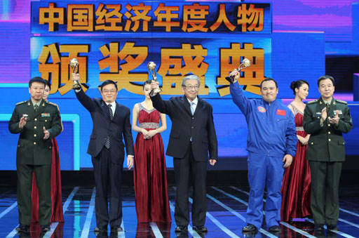 12月12日,中央电视台经济频道现场直播了2013中国年度经济人物颁奖盛典?!膀粤焙旁厝饲彼餮蟹⑼哦尤倩?013中国年度经济人物创新奖。中国船舶重工集团公司第702研究所所长翁震平、“蛟龙”号载人潜水器总设计师徐芑南和潜航员叶聪作为团队代表,接受了“神九”航天员景海鹏和刘旺为他们颁发的奖杯。