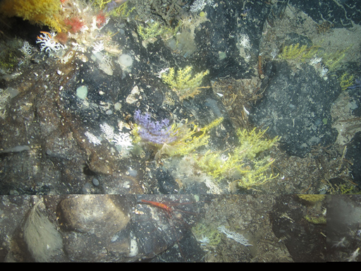 这些深底栖生物包括了约1米高的粉红色海底鞭状珊瑚、20厘米~40厘米高的粉红色树枝状珊瑚、不足10厘米的白色簇生珊瑚、不规则块状的白色海绵以及海星、水螅、鱼等。据现场样品描述员、国家海洋局第三海洋研究所深海和极地底栖生物课题组黄丁勇介绍,这些生物主要有7类,其中较多的是白色簇生珊瑚,个体很小,不足10厘米,部分堆积在一起。另一类数量较多的是鞭状珊瑚,长度达1米。此外还有很多海绵,白色居多,呈块状,形状不规则。现场还观察到很多鱼类,体长在20厘米~100厘米之间,也有少量体长在1米以上。在这些鱼类中,还包括一条鲨鱼,体长约1.5米。