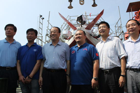 国家海洋局副局长、中国大洋协会理事长王飞与潜航员及各单位领导合影