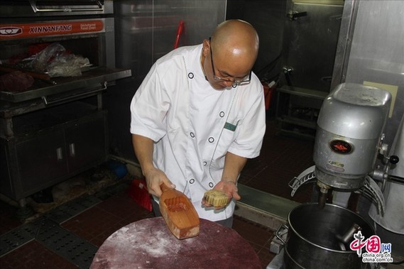 老谭在示范做月饼