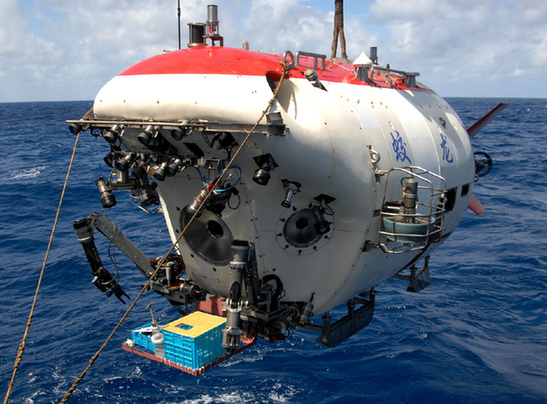 2013年6月17日16时30分左右,中国"蛟龙"号载人潜水器从南海一冷泉区海底回到母船甲板上,三名下潜人员出舱,标志着"蛟龙"号首个试验性应用航次首次下潜任务顺利完成。
