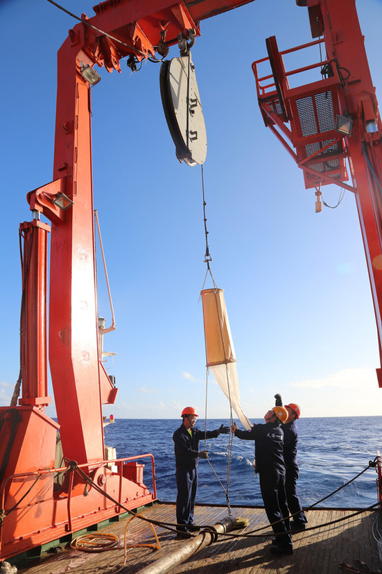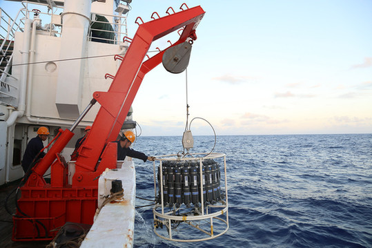 当地时间5月11日,中国大洋第34航次第五航段科考队在中印度洋海盆进行首次综合作业??瓶级釉痹谕徽疚幌群蠼辛酥亓χ⊙?、CTD(温盐深仪)采水和浮游生物拖网作业。旨在进一步摸清中印度洋海盆区域环境状况和生物多样性特征。(记者 兰圣伟)