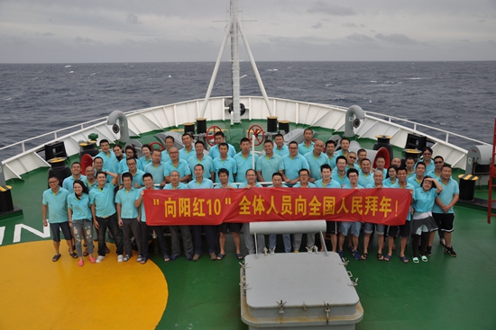 ?春节当日,距离第二航段起航仅过了三天,记者与另外几位新上船的人员仍有严重的晕船反应,加上思乡心切,心情颇为沉重。然而“向阳红10”船的包饺子、茶话会春节联欢会等一系列活动让大家感受到了同胞之间的鼓励和温暖,家人朋友通过海信通发送的祝福信息也让大家感觉离家乡不再遥远。乘风破浪会有时,直挂云帆济沧海。为了我国的大洋科考事业,“向阳红10”船的人员远离家乡,来到海况复杂的西南印度洋抛洒汗水,相信这份付出一定能得到回报?。ㄌ嘏杉钦?葛蕾)