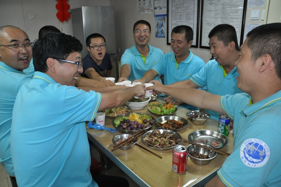 2016年2月7日是农历的大年三十,这是个阖家团圆、举国欢庆的节日。而为了我国的大洋科考事业,“向阳红10”船与“大洋一号”船彼时漂泊在浩瀚的西南印度洋中,不能与家人团聚。为了庆祝春节,缓解大家的思乡之情,“向阳红10”船举行了包饺子、茶话会、春节联欢会等一系列节目,让大家过了一个难忘的春节。