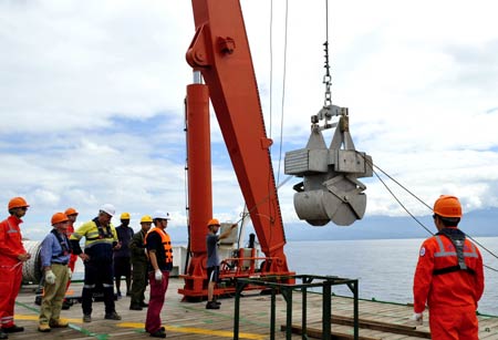 8月14日,我国万米级载人深潜器科考母船“张謇”号,用箱式采样器采集新不列颠海沟西部海域的海底沉积物。当日,受巴布亚新几内亚的当地矿业公司委托,“张謇”号上的“彩虹鱼”项目团队和澳大利亚IHA公司工程技术人员,在所罗门海的新不列颠海沟西部海域,联合展开海洋环境调查。