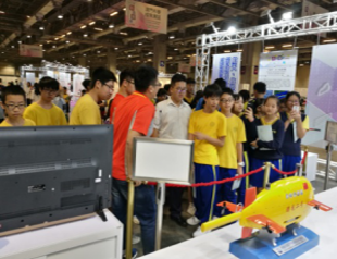 在众多展品中,“蛟龙”号成为展会的主角,参观体验的观众每天都排起长长的队伍,学生们纷纷与蛟龙号合影。长相萌萌的“潜龙二号”也极受小朋友们的青睐,倍受追捧。??