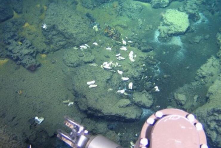 图为散布在硫化物沉积物上的贻贝残骸