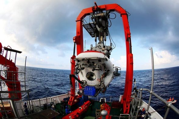 4月30日,蛟龙号在上一次下潜成果的基础上,继续在珍贝海山区下潜,只不过这次的下潜人员换成了主驾驶杨一帆、副驾驶傅文涛和下潜科学家杨刚。