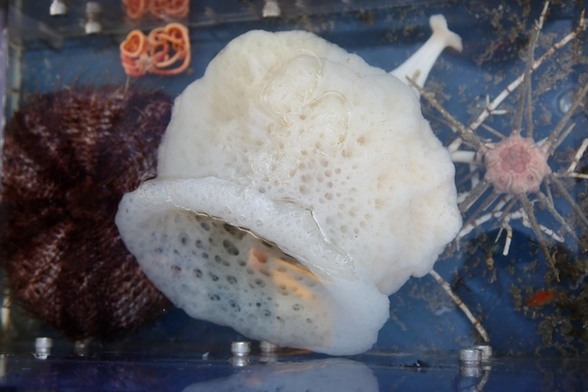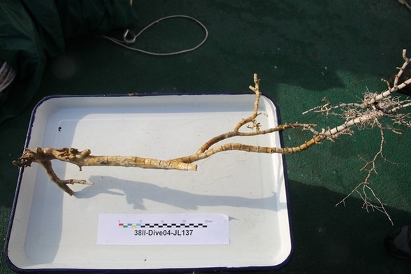 此次下潜,蛟龙号采集到比上个潜次更加丰富的岩石、生物样品,包括6块玄武岩样品共计37.1kg,1块半固结有孔虫砂,1株生物样品竹柳珊瑚,1株丑柳珊瑚,两只海胆,3只蛇尾,1个海绵等。