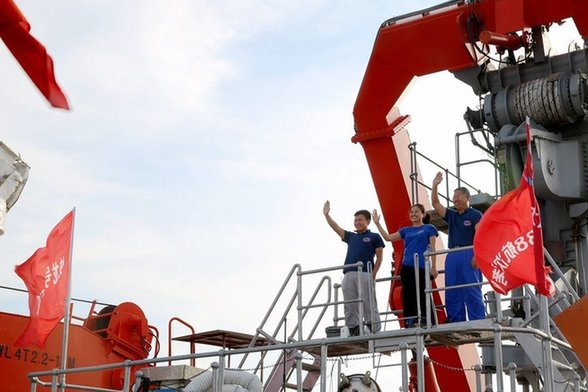 “你们辛苦了!”队友们用聚集到甲板上,用简短的话语和热情的拥抱表达对下潜成功的祝贺。