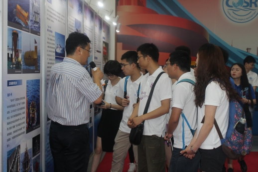 国家海洋局第一海洋研究所的孙永福讲解展品