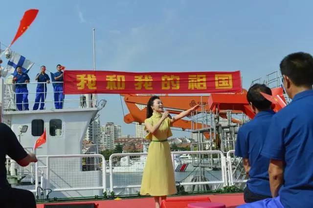 我国载人深潜潜航员唐嘉陵、傅文韬、陈云赛、刘晓辉、齐海滨、杨一帆、张奕、赵晟娅现场演唱了《壮志在我胸》,激情高亢的潜航员们向场内观众展现了我国深潜勇士的精神风貌。北海分局一线职工的代表们,也深情演唱了《我爱你中国》,向祖国献上真挚的祝福。