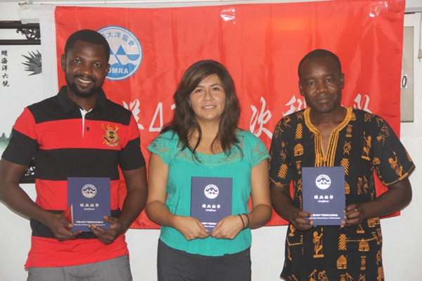 加纳(左)、墨西哥(中)和肯尼亚(右)三名国际培训学员结业典礼