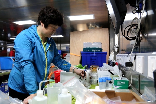 取样一结束,实验室就绷紧弦。样品送到实验室后,科考队员们抓紧时间进行分析检测。