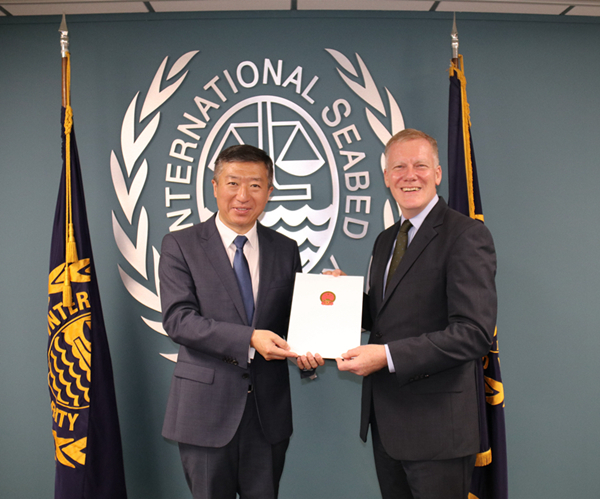 4月5日,中国常驻国际海底管理局代表田琦大使在位于金斯敦的海管局总部向秘书长迈克·洛奇递交全权证书。