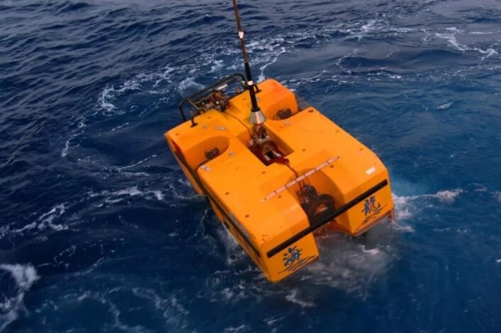 3月25日,“海龙Ⅲ”潜水器在西太平洋海域进行深水试验。(新华社记者陈灏摄 )