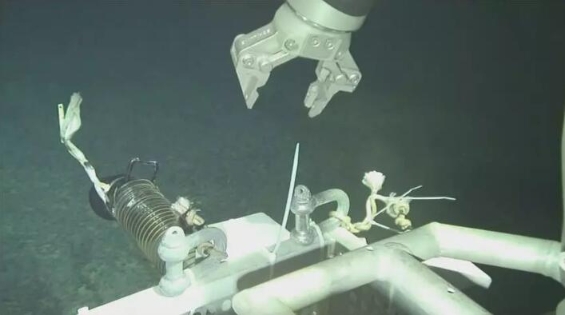 “海龙Ⅲ”在海底拍摄的机械手作业画面。(上海交通大学“海龙Ⅲ”研发团队提供)