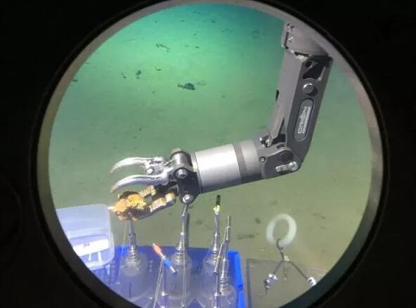 “蛟龙”号机械臂在海底获取岩石样品(新华社)