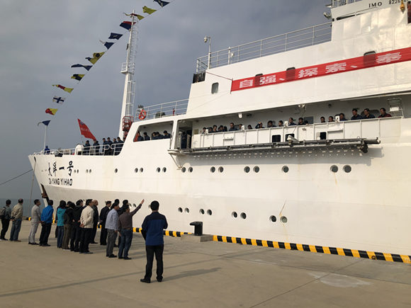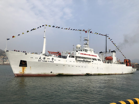 2019年10月18日,“大洋一号”船圆满完成中国大洋56航次科学考察任务,返回青岛。中国大洋56航次是经自然资源部批准,由中国大洋事务管理局组织,国家深海基地管理中心具体组织实施的西北太平洋富钴结壳海山区环境综合调查航次。执行航次任务的“大洋一号”船自8月28日从青岛起航,历时52天,航程约8998海里,全体科考队员克服了201915号台风“法茜”和201919号台风“海贝思”恶劣??龅挠跋?,完成了西北太平洋四个海山区的5座深水海山包括地形地貌、水文、海水化学、沉积物环境、生物群落在内的多学科综合调查,圆满完成了既定的调查任务。在西北太平洋富钴结壳海山区深海生态系统与深?;肪车鞑榉矫嫒〉昧硕嘞畛晒?。