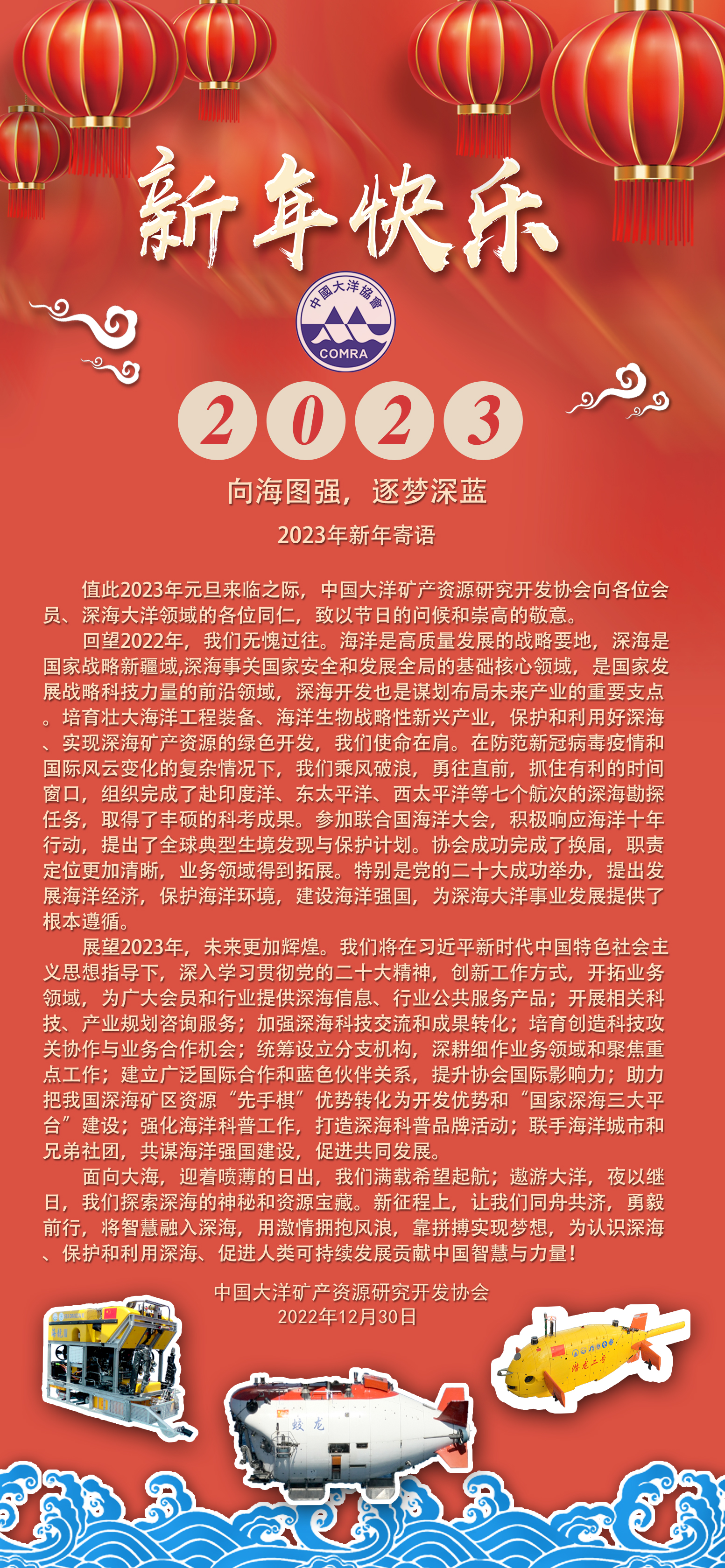 向海图强,逐梦深蓝 中国大洋矿产资源研究开发协会2023年新年寄语